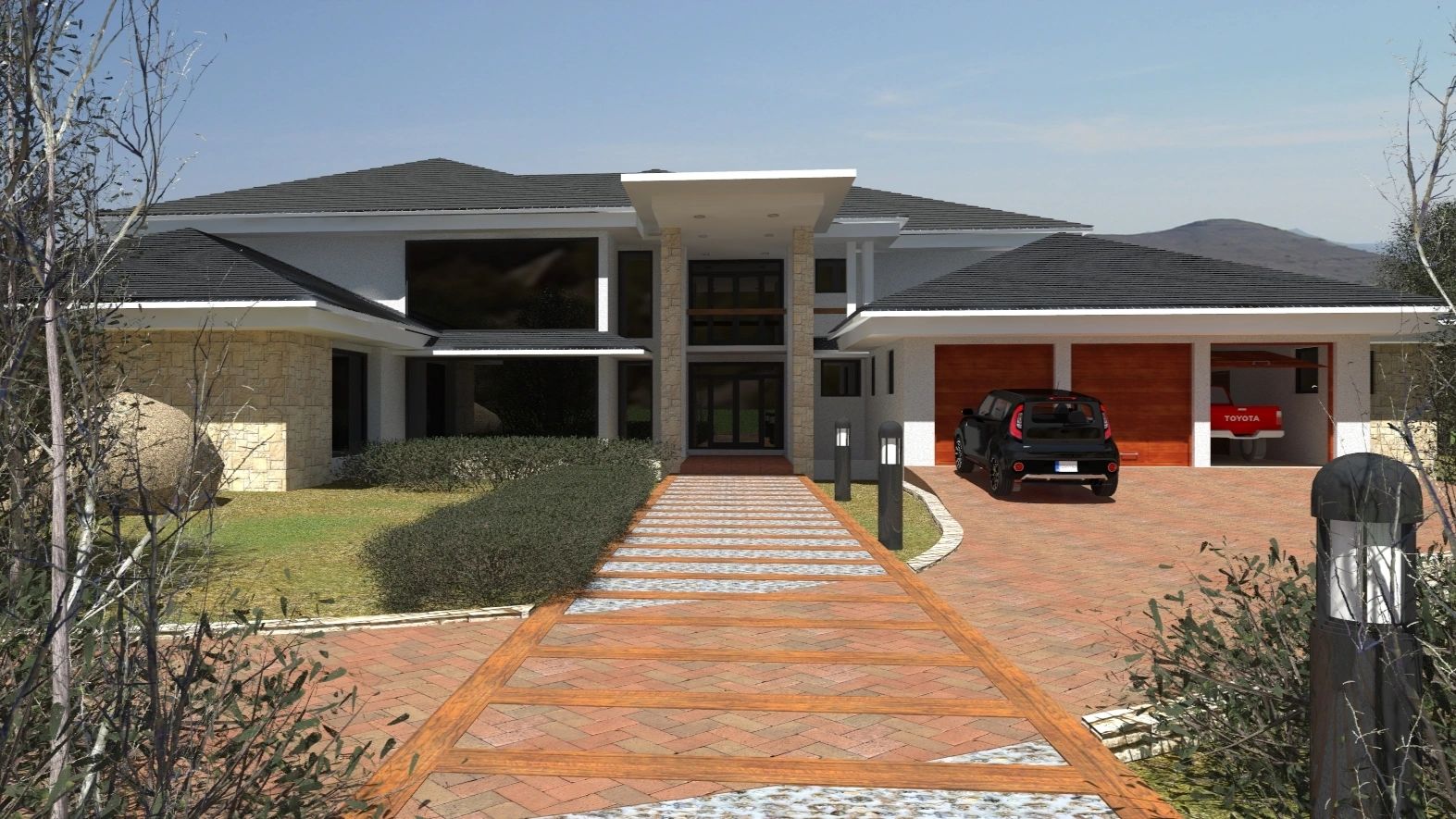 This house was designed to interpret the American client's American dream house while reflecting its context, viz the rocky mountainous terrain that Maseru is. It was part of - and the benchmark for - a major planned residential and commercial complex at the foot of the hill overlooking Katlehong, where the Maseru Mall now sits.